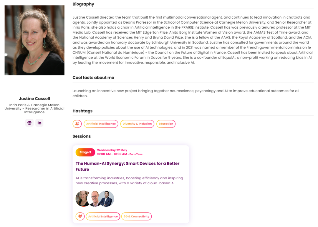 对于如Viva Technology这样追求高品质、高规格活动的主办方而言,邀请贾斯汀·卡塞尔教授这样的行业巨擘,无疑降为活动赋予灵魂与深度。她的分享是对未来的深刻洞见,是启发思考的智慧风暴。在贾斯汀·卡塞尔的引领下,我们仿佛已经触碰到了那个由科技与人文交织而成的,更加美好的明天。